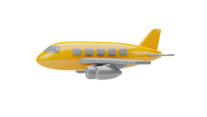 3D Yellow toy airplane on transparent background