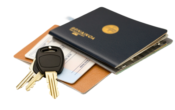 Travel essentials including passports tickets and car keys representing adventure exploration and new destinations isolated on white background PNG