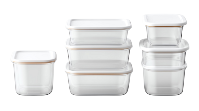 Isolated trasparent Png Transparent food storage containers stacked neatly.