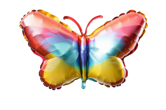Colorful butterfly-shaped balloon floating gently in a bright, airy space isolated on transparent background