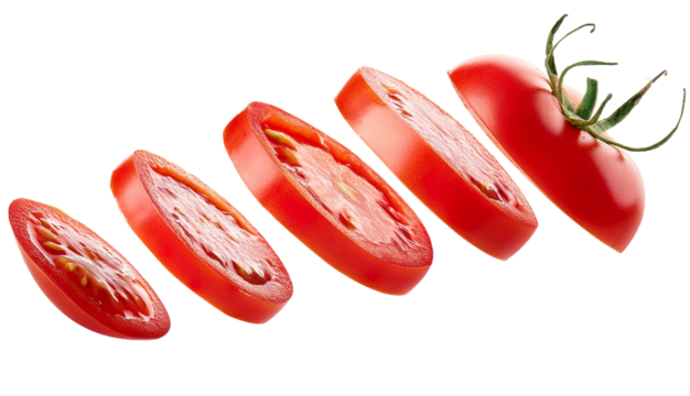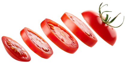 Rodaja de tomate voladoras en fondo