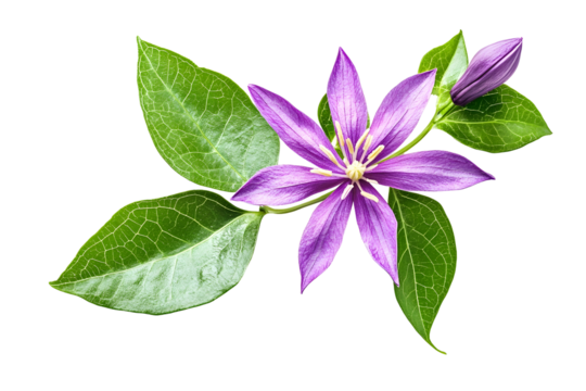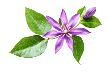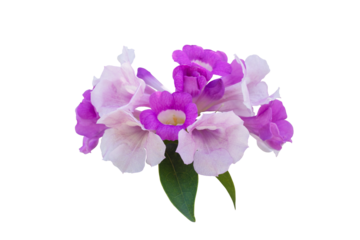 Purple flower of Garlic vine or Mansoa alliacea bloom with leaf isolated on white background with clipping path.