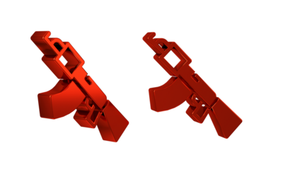 Red Submachine gun icon isolated on transparent background. Kalashnikov or AK47.