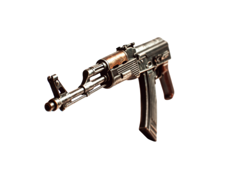 AK-47 Assault Rifle: A detailed studio shot showcases a powerful and iconic AK-47 assault rifle, a symbol of military strength and precision engineering.