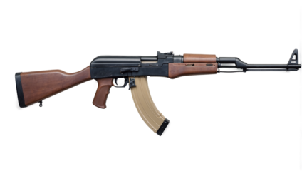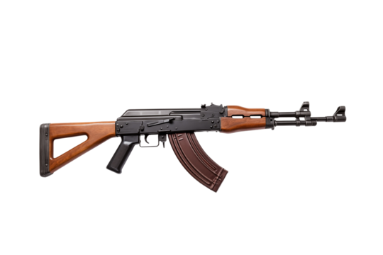 Detailed studio shot of an AK-47 rifle against a transparent isolated background showcasing
