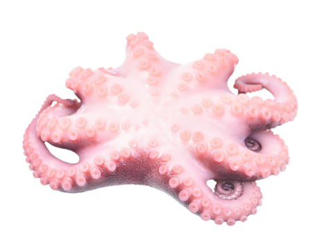 Whimsical orange octopus mascot with blue eyes on transparent background