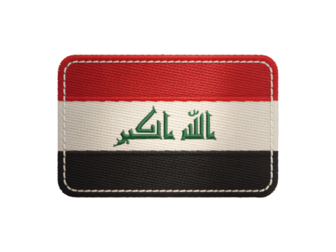 A detailed embroidered patch showcases the national flag of Iraq with its red, white, and black stripes along with Arabic script