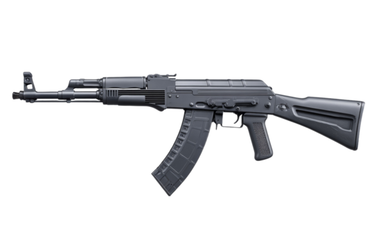 Russian weapon automatic machine assault rifle isolated on transparent background PNG cut out clipart.