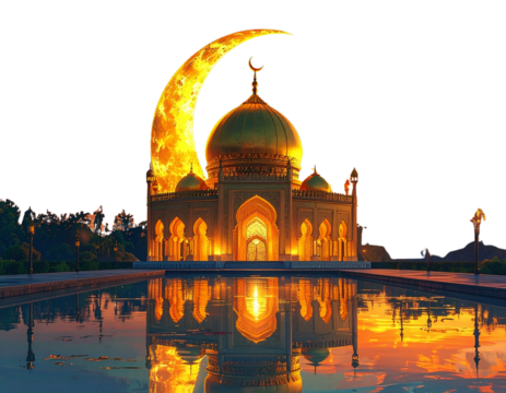 Golden dome of the rock isolated on transparent background, a sacred islamic shrine in jerusalem, with its iconic architecture and religious significance