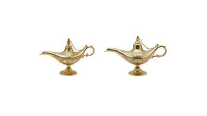 Golden, ornate magic lamp.  Detailed, detailed design.  Classic, fantastical