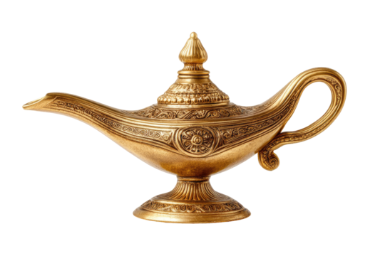 Ornate Golden Aladdin's Magic Lamp Keywords: magic lamp, aladdin, genie, lamp, ornate, gold