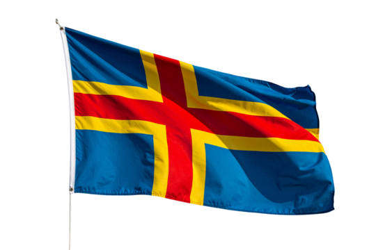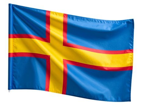 Åland Islands Flag with Nordic Cross Design, Waving on Transparent Background