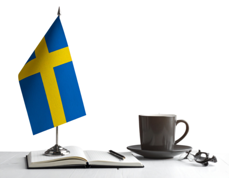 Åland Islands Flag with Coffee Cup and Notebook