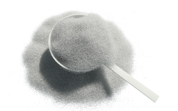Sport food supplement powder 3d render on trasparent background. Supplement, creatine, hmb, bcaa, amino acid or vitamine in a white scoop. Sport nutrition healthy life concept