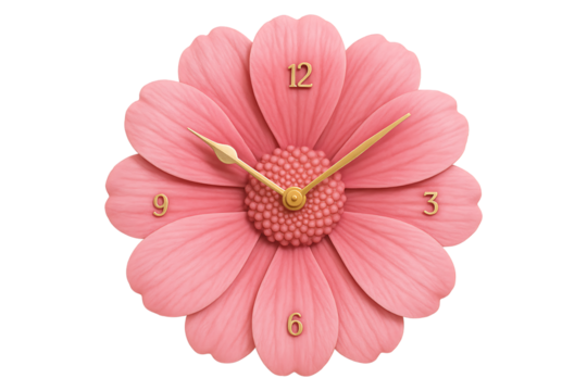 Decorative Floral Wall Clock with Petal Design Isolated on a Transparent Background