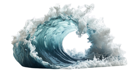 3D render of an isolated ocean wave with foam on a white background
