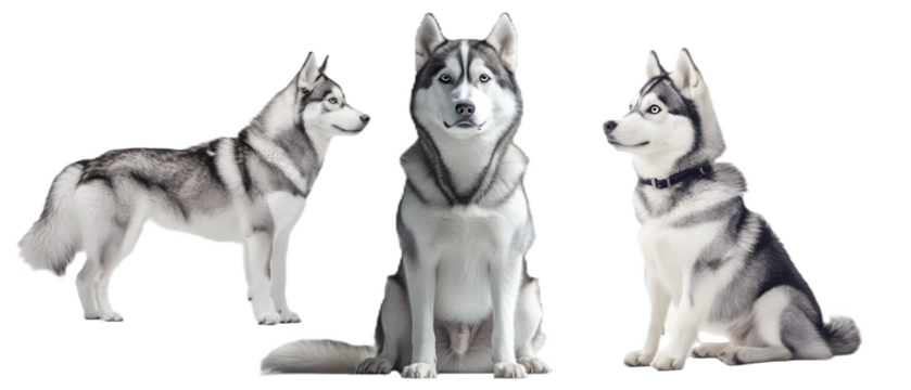 Siberian Husky Dogs Standing and Sitting Isolated on Transparent Background, Cut Out, Collection Pet
