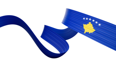 3d Flag Of Kosovo 3d Wavy Shiny Kosovo Ribbon Flag 3d Illustration