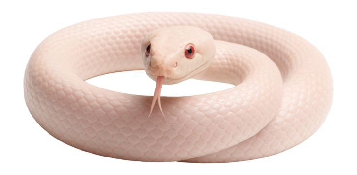 White albino snake coiled reptile exotic pet python, isolated on a transparent background