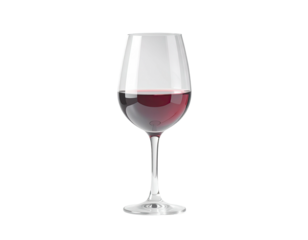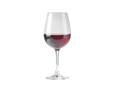 A tall, elegant glass filled with deep red liquid, isolated against a solid black backdrop