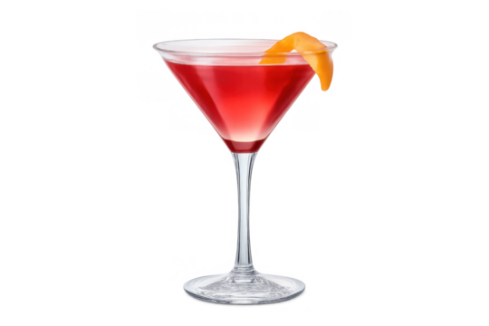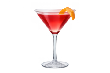 Cosmopolitan cocktail with orange zest, a classic red alcoholic drink for celebration and party concepts