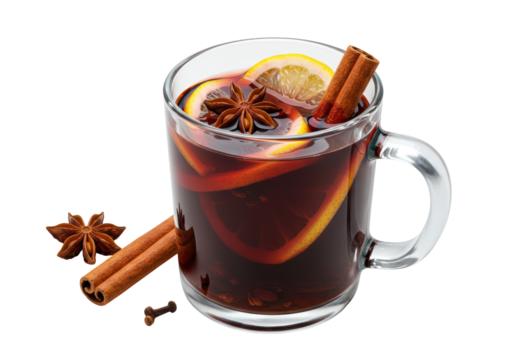 Isolated Festive Mug of Mulled Wine with Spices and Citrus