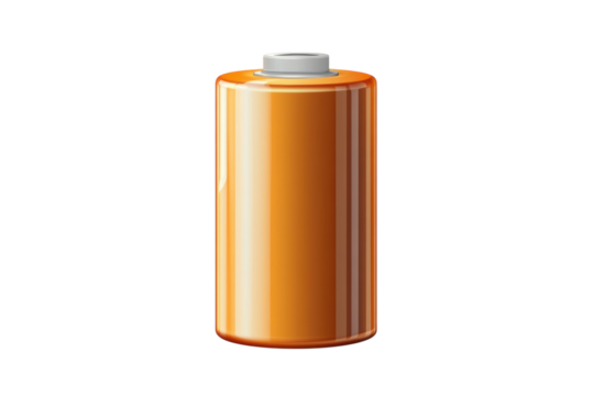 Shiny yellow cylinder with chrome accents and white button isolated on transparent background