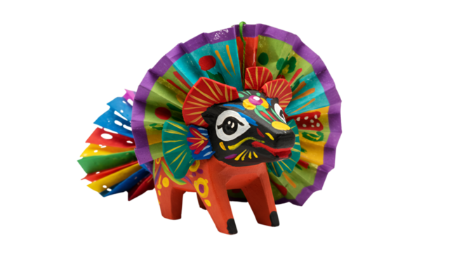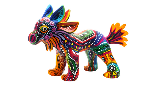 Vibrant mexican alebrije figurine display colorful art indoor setting artistic viewpoint, isolated on white or transparent background