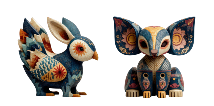 Isolated 3D Render of Colorful Alebrije Animal Figurine Traditional Mexican Art
