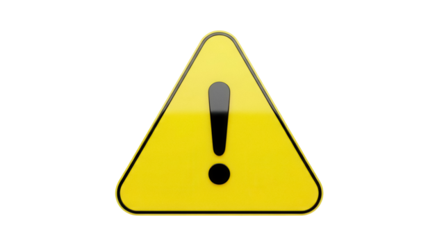 Flat caution sign with exclamation mark on transparent background