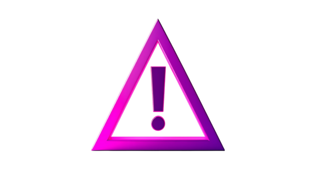Yellow triangle warning sign with black exclamation mark alerting to danger, caution, and hazard on transparent background