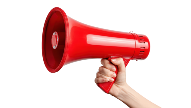 Red air horn attached to blank aerosol can isolated on white, loud safety signal for sports events, boating and emergency alert concepts