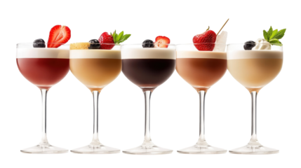 Brandy Alexander cocktail in a martini glass isolated on a white transparent background