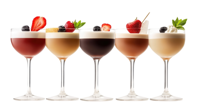 Cocktail Set: Espresso Martini, Brandy Alexander, and Ward Eight with Strawberry Garnish