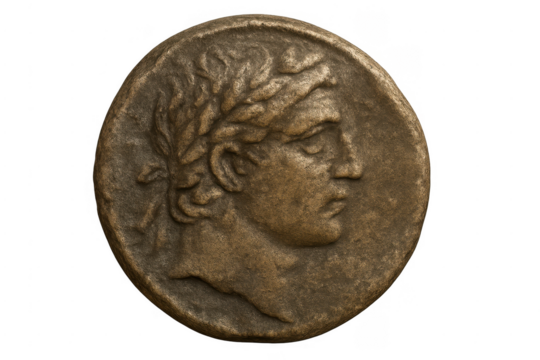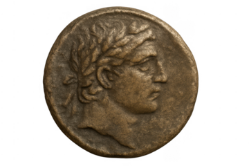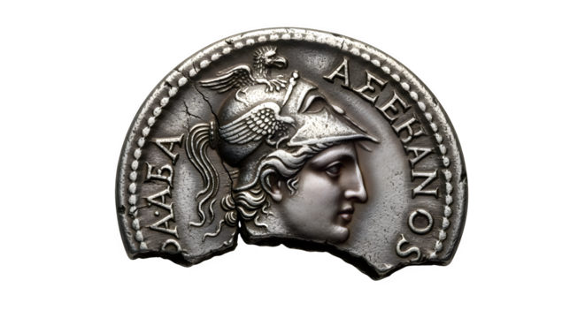 Ancient coin depicting Alexander the Great, with transparent background