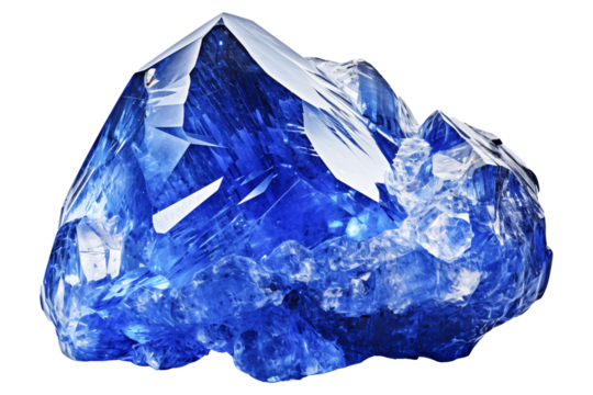 Blue sapphire PNG crystal precious rock isolated on transparent and white background - natural treasure rock - gem mineral advertising concept