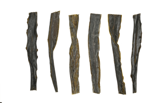 seaweed kelp plant group isolated on transparent background, set of fresh young kelp, cutout png
