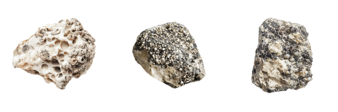 Set of small piece of barnacle-encrusted rock isolated on a transparent background