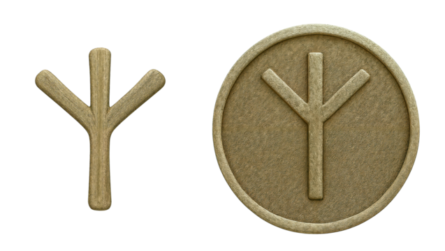 Germanic Futhark "Algiz" textured symbol, standalone and engraved on a coin, isolated on transparent background