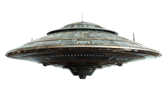 Ufo alien ship, cut out. Isolated on a transparent background.