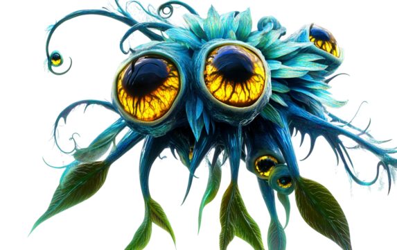 Digital alien head with cyan magenta swirl on transparent backdrop