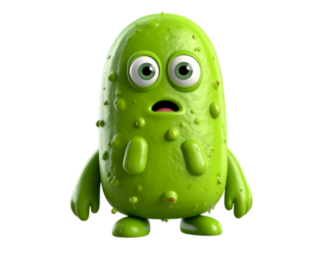 Slimy Green Germ Looking Over Shoulder Nervously, Dripping Texture, Semi-Realistic, Isolated PNG