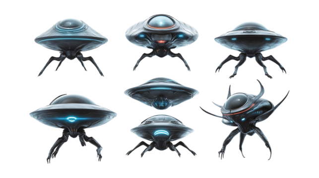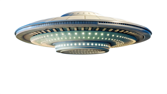 ufo--unidentified-flying-object--alien-spaceship- isolated on white background png, ai generated
