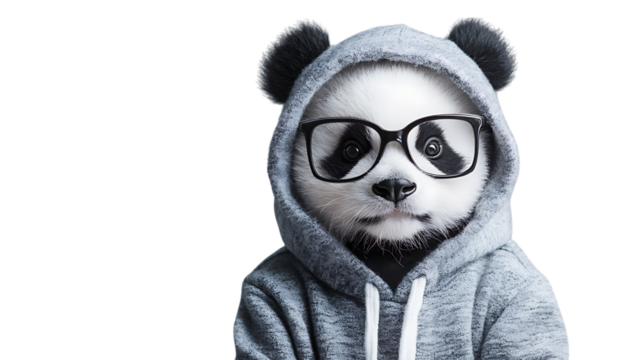 close up of a panda with hoodie
