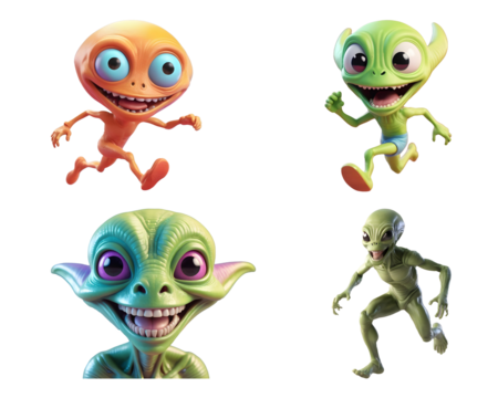 3d rendering of a cute cartoon alien running set. Generative AI