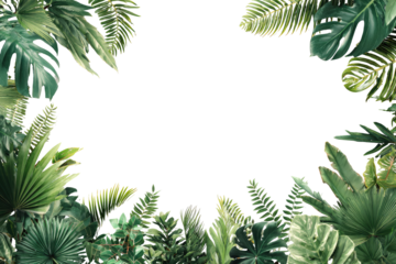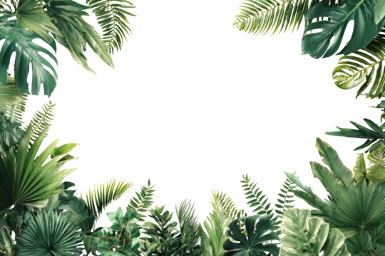 Lush green tropical leaves frame a dark center