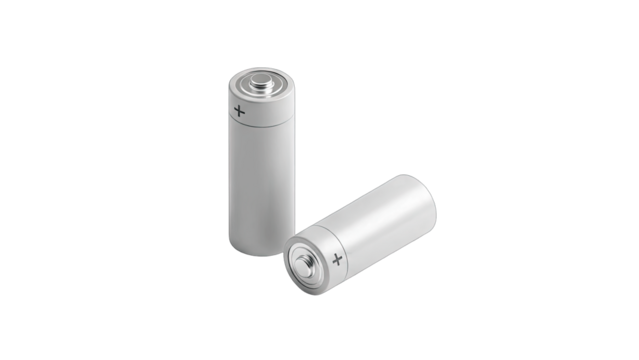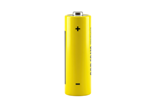 Yellow AA battery isolated on white, alkaline power cell for electronics and portable devices PNG