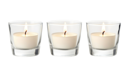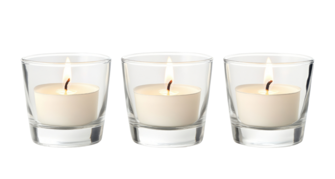 Elegant glass candle with a warm glow against a transparent background, tranquility