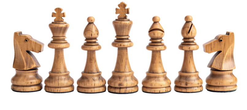 A classic chess set with all pieces lined up, background isolated on a Transparent background, PNG file.