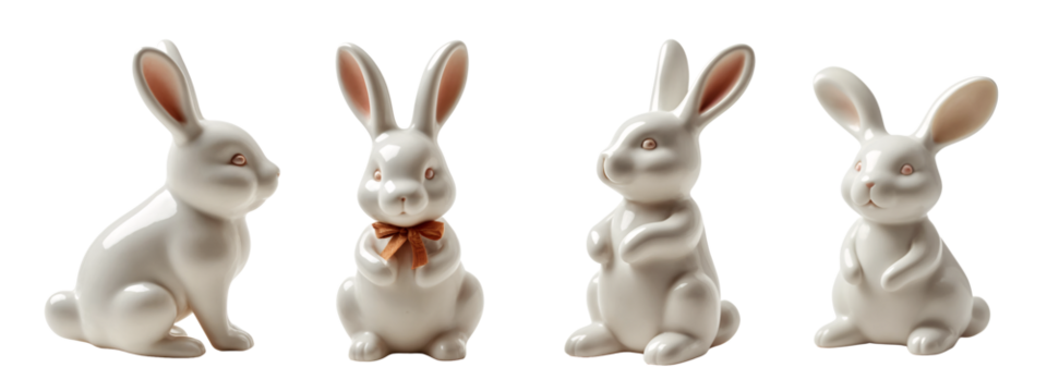A set of four white ceramic rabbits sitting next to each other.